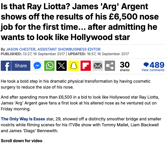 Reality star James Argent went to Dr Frati for a closed Rhinoplasty procedure in London.